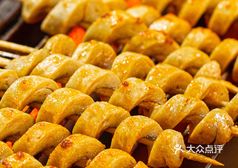 面筋好吃,土豆也好吃,不是土豆片,是土豆块。蛮扎实。种类不是特别多,但一般烧烤的吃的都差不多有,店不大,里面可以堂食。